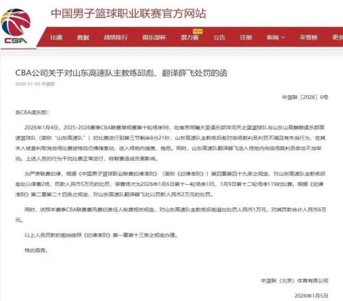 最后一个消息,分享一下邱彪被罚的情况。各位球迷都知道,在最近结束的一场常规赛中,山东男篮的主教练邱彪因为对着裁判咆哮,最终被直接驱逐出场。而如今官方更是直接公布了罚款,邱彪被重罚几万,还停赛两场,对整个山东男篮的影响应该是很大的。