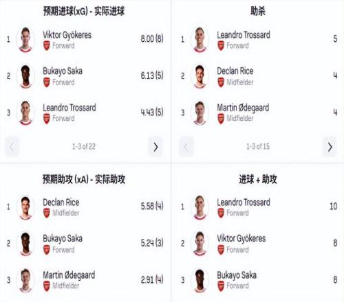 同时在英超赛场,进球+助攻数据大于等于5球球员,已经超过10人。阵容足够厚实,好球员够多,成为了阿尔特塔的底气。