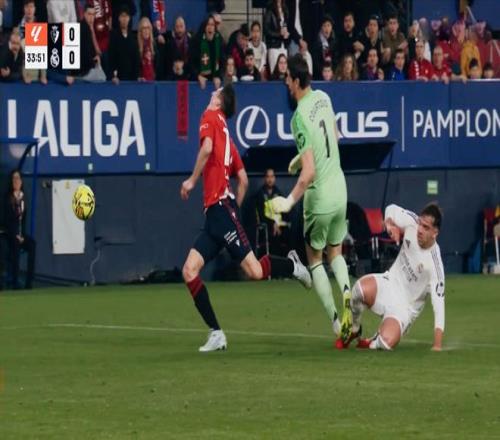 开场之后,无论是奥萨苏纳还是皇家马德里,双方的攻防节奏并不快。第17分钟,奥萨苏纳发动快速反击,布季米尔禁区前沿一脚兜射,擦着远端立柱偏出。随后姆巴佩明显假摔,引发了全场的嘘声。第24分钟,库尔图瓦门线救险,皇马逃过一劫!