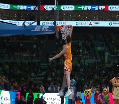 戴昊致敬卡特,转体小拉杆风车扣篮,奈何第一次扣篮失败了,第二次依然失败,幸好第三个成功了,获得42分。