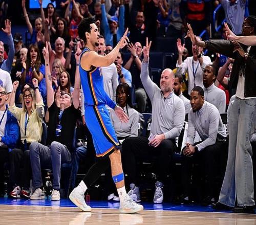 本场比赛中,雷霆的替补后场新援贾里德-麦凯恩(Jared McCain)的表现算得上是非常出色。麦凯恩全场出场21分31秒,投篮7中4,三分线外5中3,罚球2中2,得到了13分1篮板1助攻的数据,没有失误和犯规,正负值更是达到了全场最高的+19。麦凯恩在进攻端的出手次数比较有限,但他还是展现出了不俗的投射能力,他也是抓住了有限的机会得到了不少分数,在进攻端起到了很好的效果。麦凯恩在防守端的表现其实也不算糟糕,至少也没有出现什么太大的问题。麦凯恩在场上时球队的局面一片大好,这也能够体现在他超高的正负值上。毫无疑问,麦凯恩的出色表现也为球队的胜利做出了巨大的贡献。