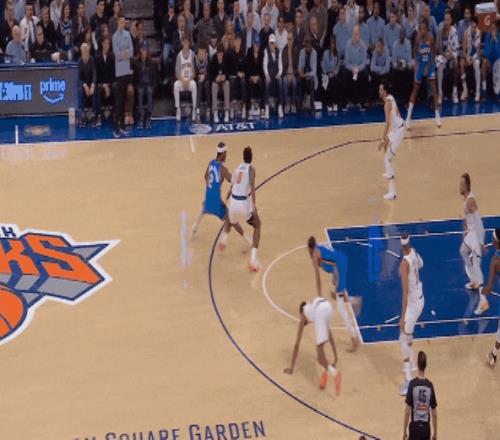 今天雷霆对魔术最后一节99比96胶着时,亚历山大一个单挑撤步三分,击倒班凯罗。