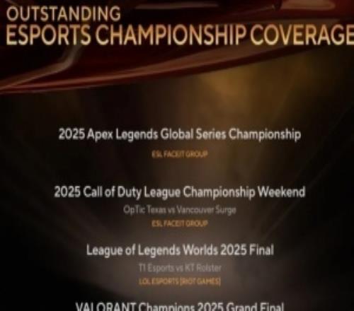 第47届体育艾美奖提名:S15决赛、巴黎全球冠军赛决赛等入围 -