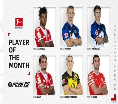德甲1月最佳球员候选:奥利塞领衔、迪亚斯、施洛特贝克在列 -