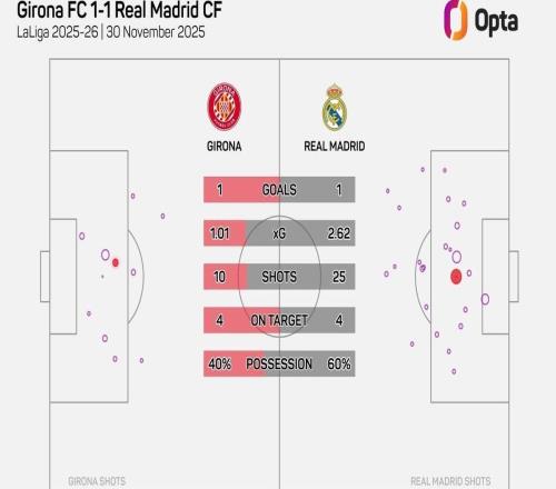 皇马本场25次射门,为本赛季西甲比赛没赢球球队中射门第二多 -