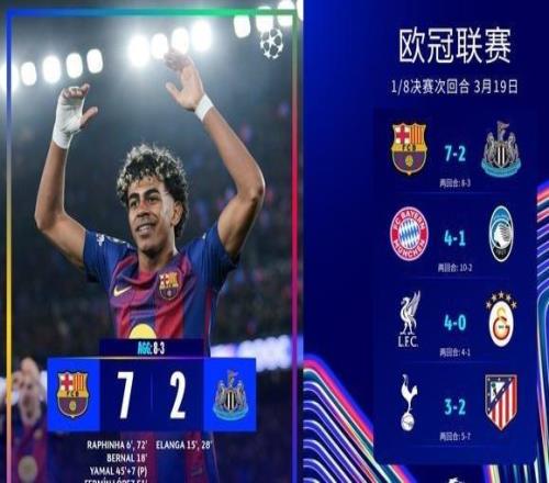 欧冠72惨案!巴萨狂胜纽卡!8强对阵宣告出炉,英超6强还剩2队 -
